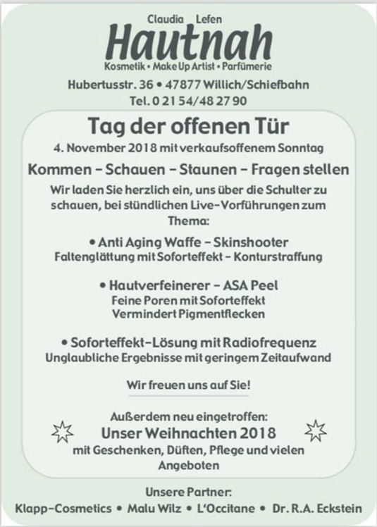 Tag der offenen Tür bei Hautnah Kosmetik!